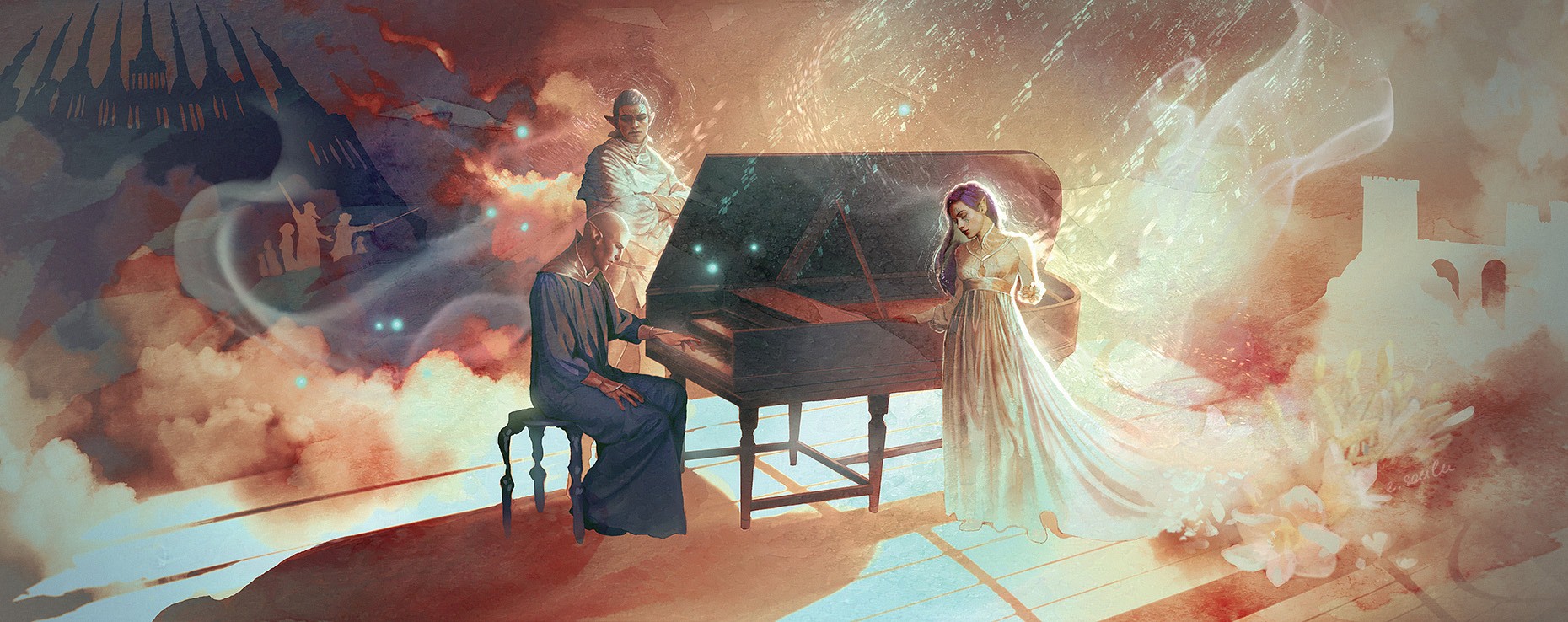 Private commission. Solas, Lavellan, and Felassan from “Dragon Age” © BioWare, Electronic Arts. April 23, 2025 / Wacom Intuos 3, Adobe Photoshop CC