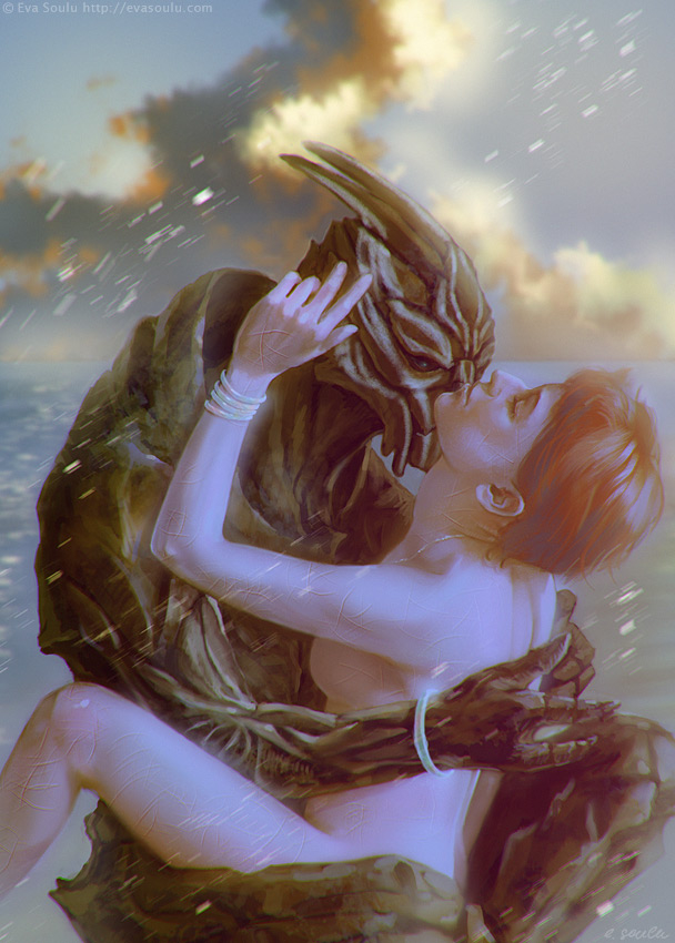 Private sketch commission. Nihlus Kryik and Shepard from Mass Effect videogame © BioWare, Electronic Arts. April 27, 2016 / Wacom Graphire 2, Painter 6.0, Adobe Photoshop CS2